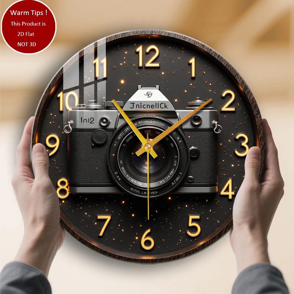 Tempered Glass Wall Clock Vintage Camera Clock Design Suitable For Wall Decor or Tabletop Display Anywhere $20.31