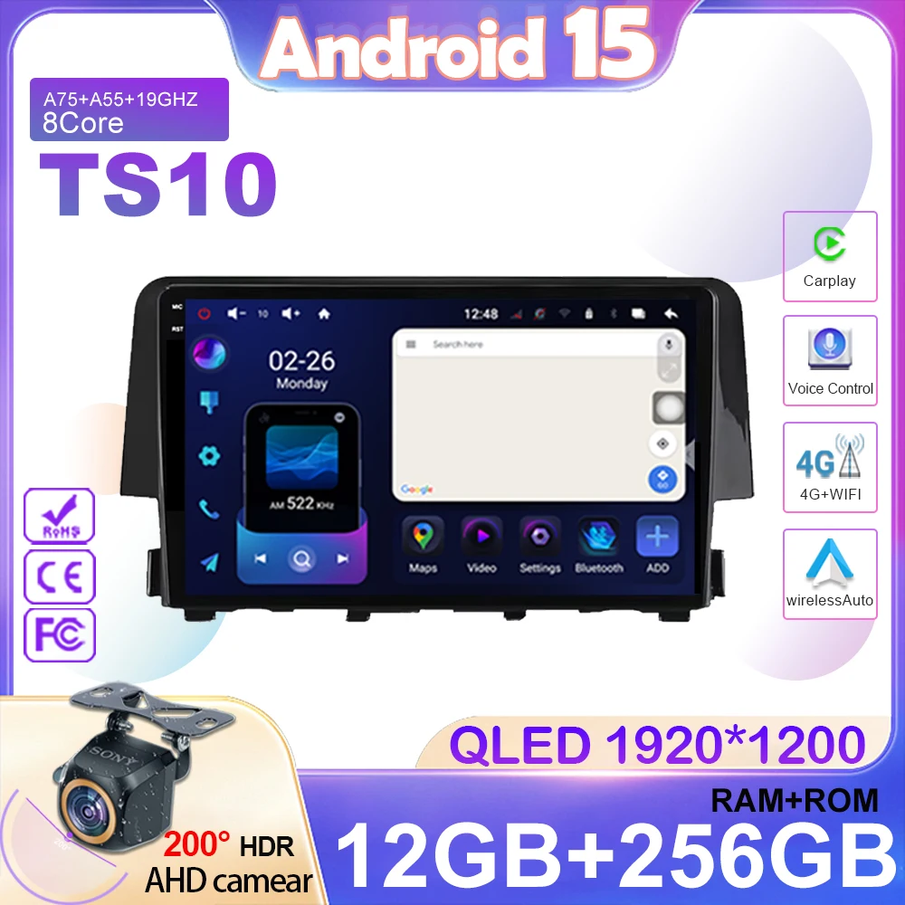 Android Car Radio For Honda Civic 10th 2016-2021 Stereo Carplay Auto Multimedia Player GPS Navigation Bluetooth IPS HD Head Unit $79.42