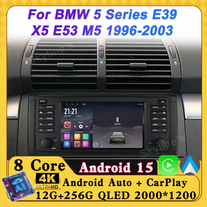 Car Radio Player For BMW 5 Series E39 X5 E53 M5 1996 - 2003 Wireless Android Auto Carplay Auto Screen Mirror Link Touch Screen $102.51