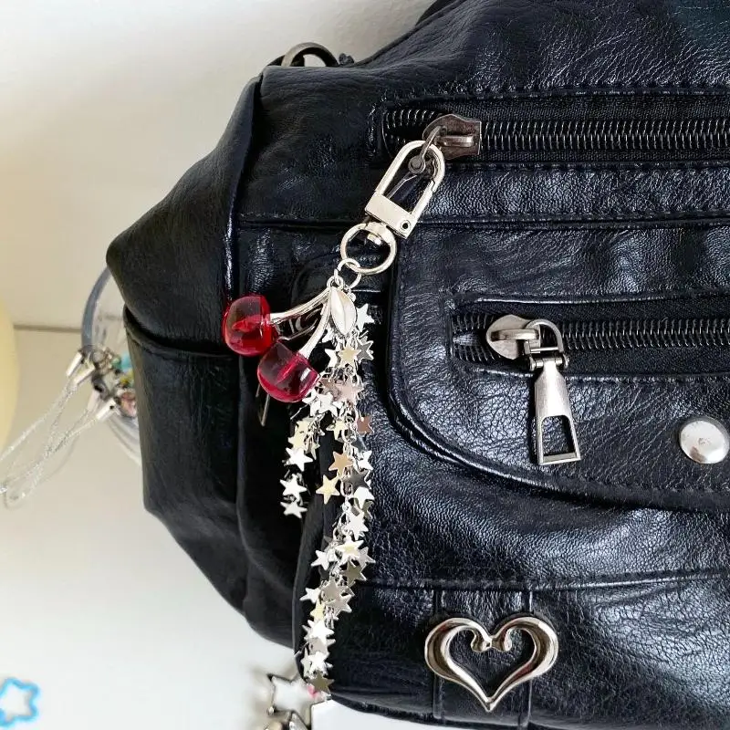 Y2K Style Cherry Star Tassel Chain Keyring Pendant 12.5cm Cute Mobile Phone Lanyard Camera Pendant Key Accessories Gifts $2.35