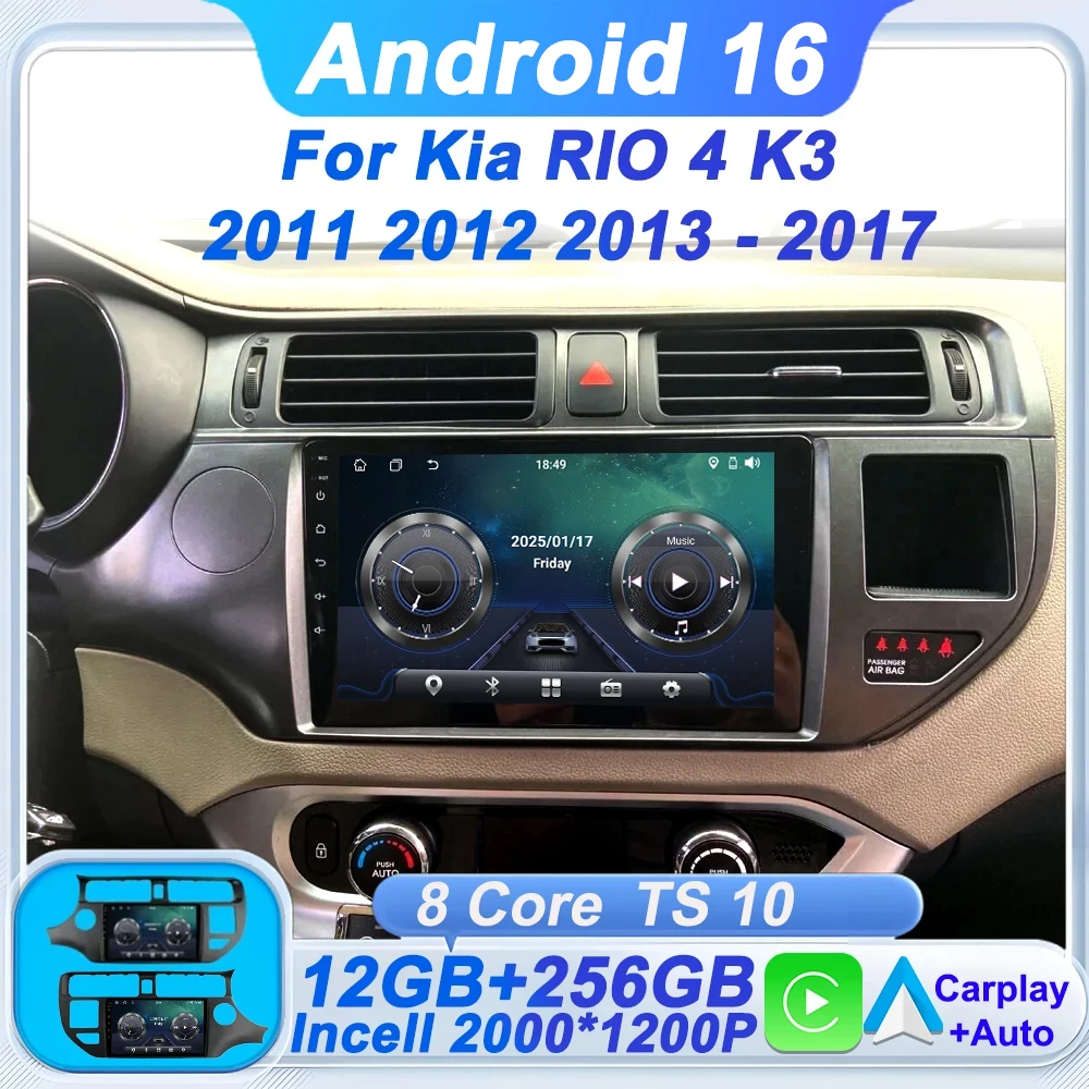 2 Din Carplay Auto For Kia RIO 4 K3 2011 2012 2013 - 2017 Car Radio Multimedia Video Player Android 16 8 Core 4G GPS Navigation $85.52
