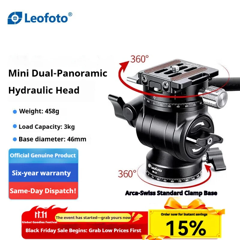 Leofoto BV-1R Hydraulic Tripod Head Portable Mini Dual-Panoramic Camera/Video/Bird Photography DSLR $72.21