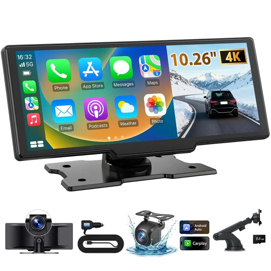 Wireless CarPlay Screen for Car 4K Dash Cam amp 1080P Backup Camera, Portable Touchscreen Car Stereo for Apple Carplay amp Andro $219.94
