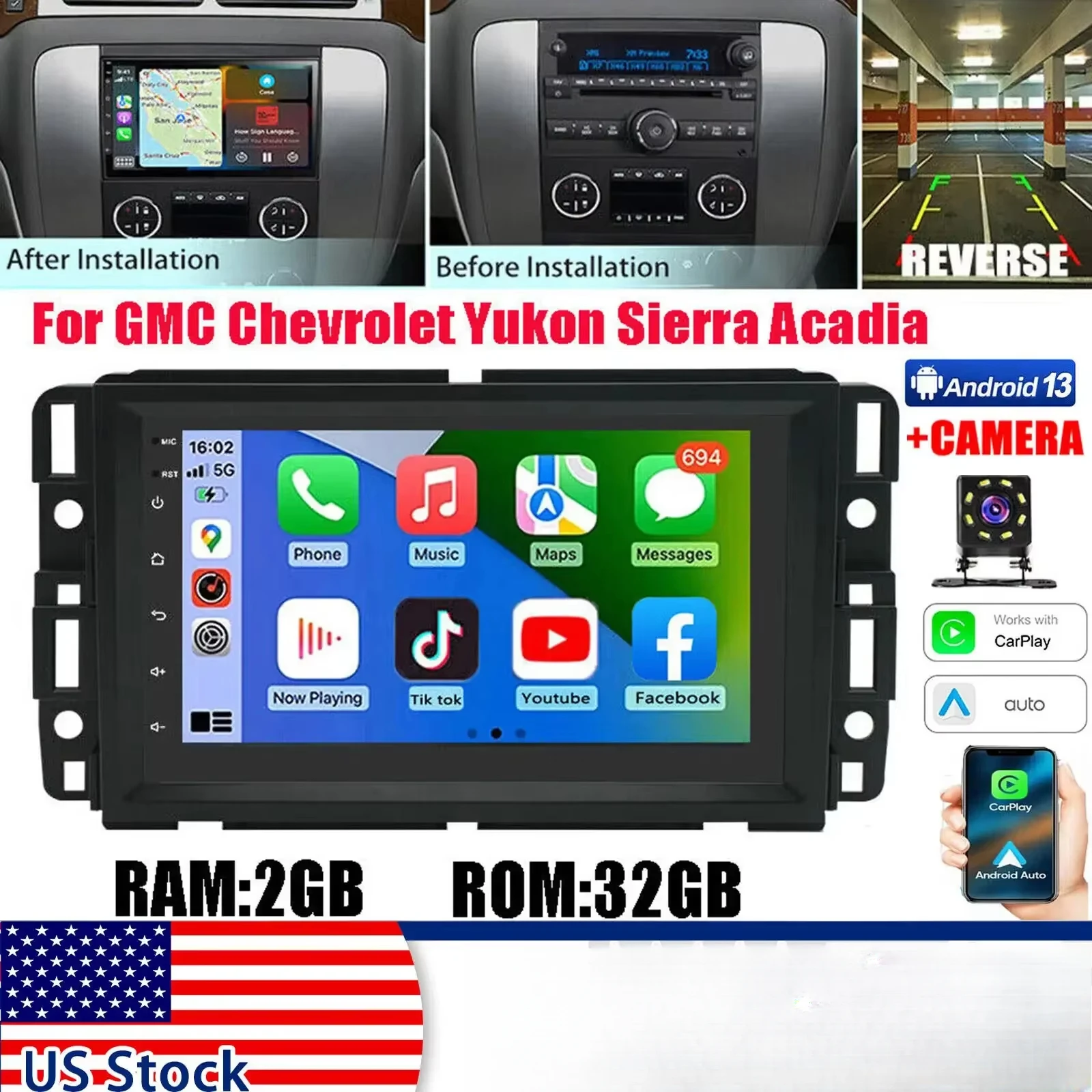 For Chevrolet GMC Android 13 In-Car Navigation System 7-inch Built-in with CarPlay+Android Auto/4+64GB/AHD Camera/Microphone $109.23