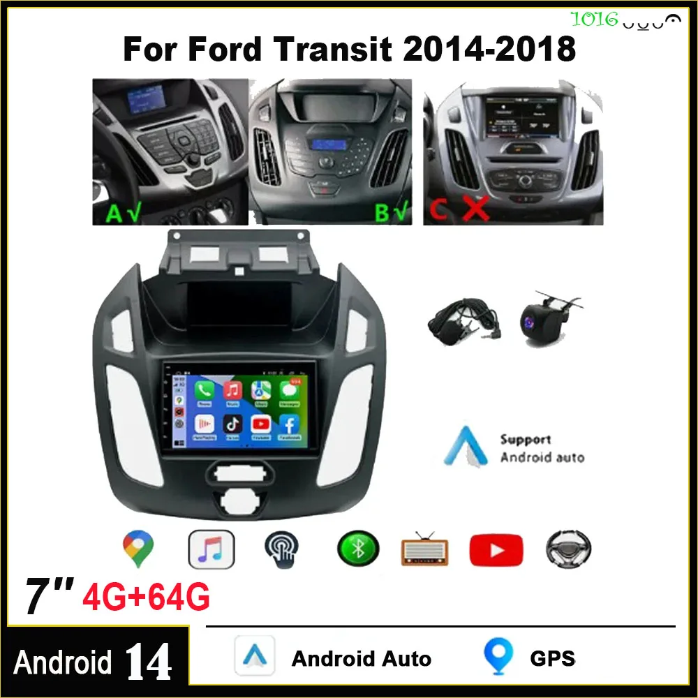 7-inch built-in Carplay + Android auto / 4 + 64G + AHD camera + microphone Android 14 car navigation For Ford Transit 2014-2018 $140.32