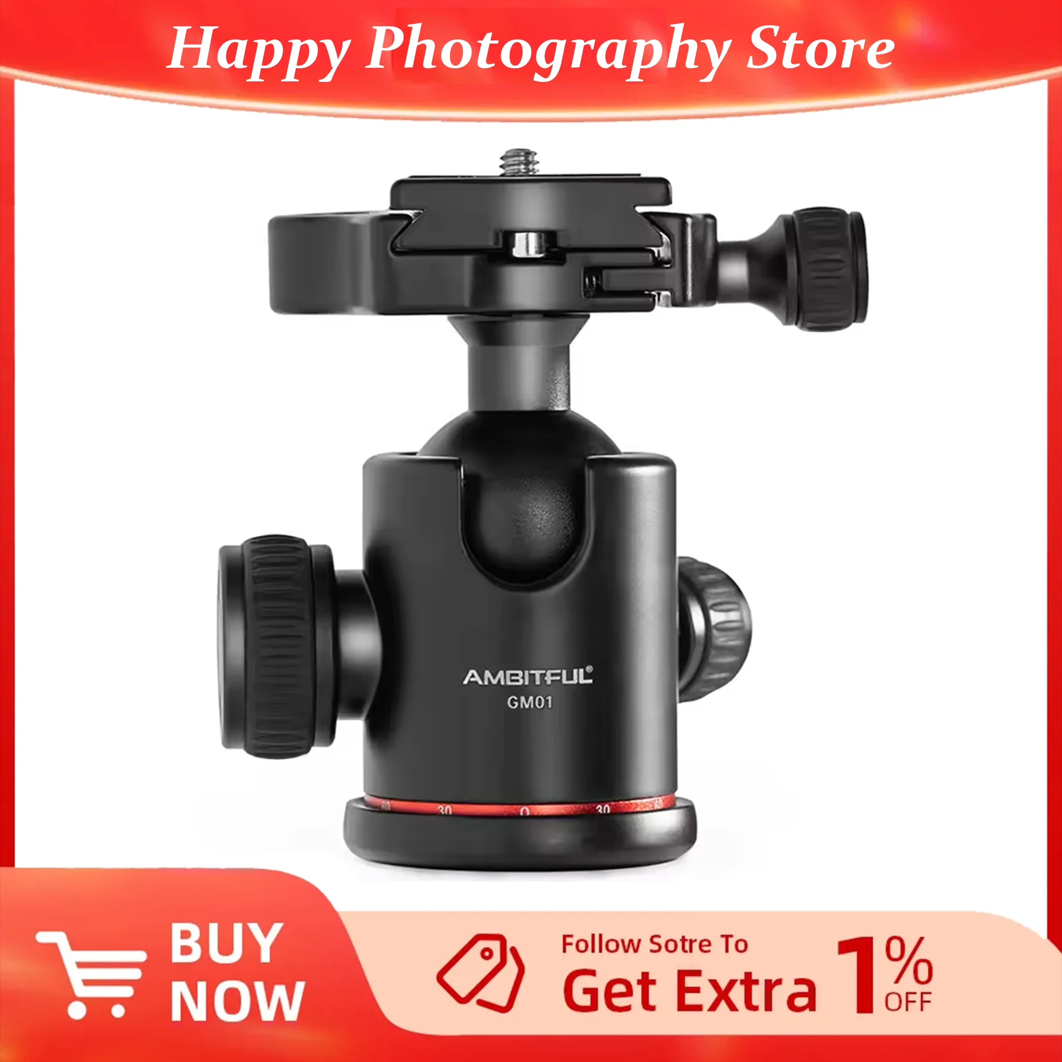 AMBITFUL GM01 Double Panoramic Aluminium alloy Ballhead 1/4 Tripod Head for Camera Vlog Tripod Bracket Photography 10kg Loading $27.87
