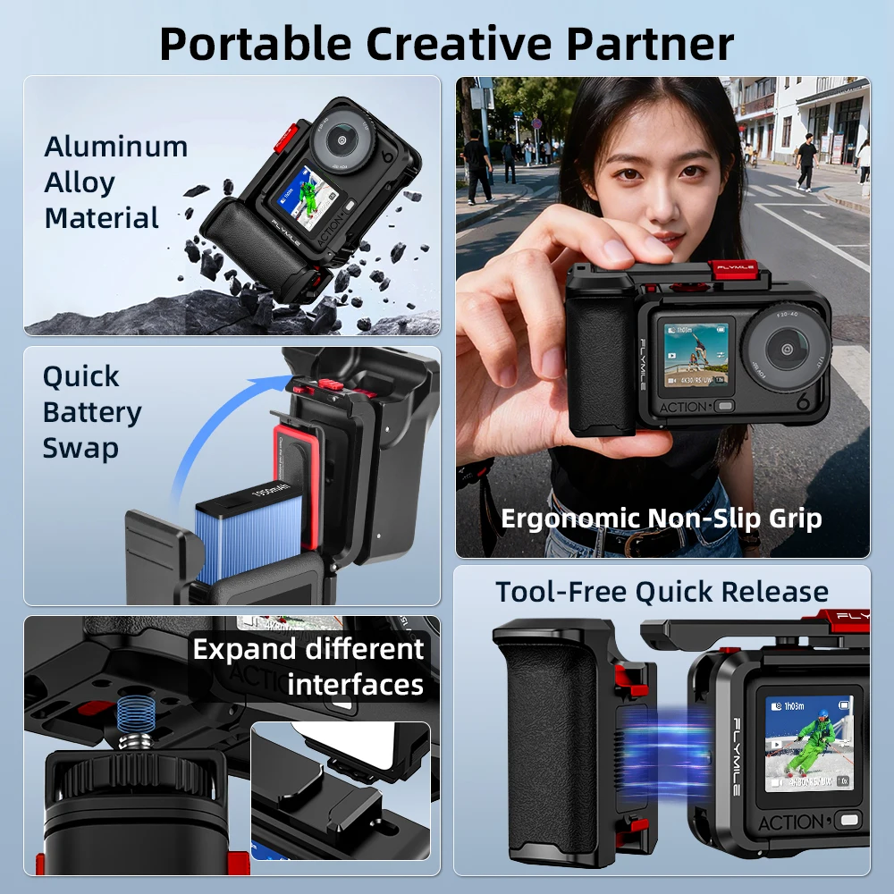 For DJI Osmo Action 6 Record Video And Take Photos Frame Aluminum Alloy Street Photography Handle Grip Kit Camera Accessories $46.98