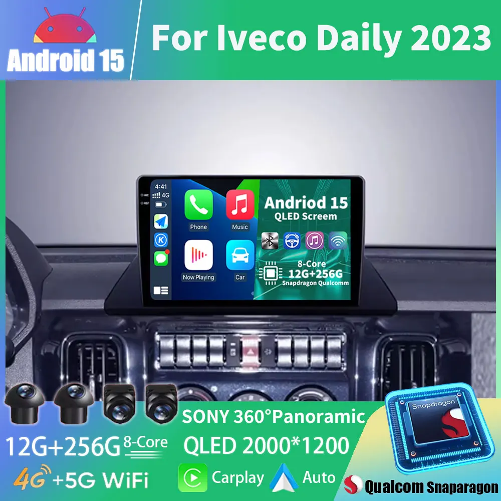 Android 15 Car Radio For Iveco Daily 2023 Navi Head Unit QLED GPS Multimedia Player Wireless Carplay Video Head Unit 360 Camera $113.78