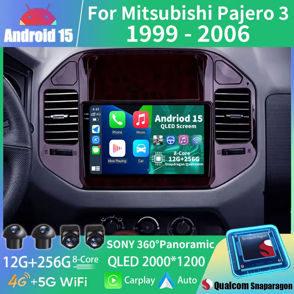 Android 15 Car Radio For Mitsubishi Pajero 3 V70 V60 1999 - 2006 GPS Multimedia Player Navi Head Unit Stereo 360 Camera QLED DSP $114.72