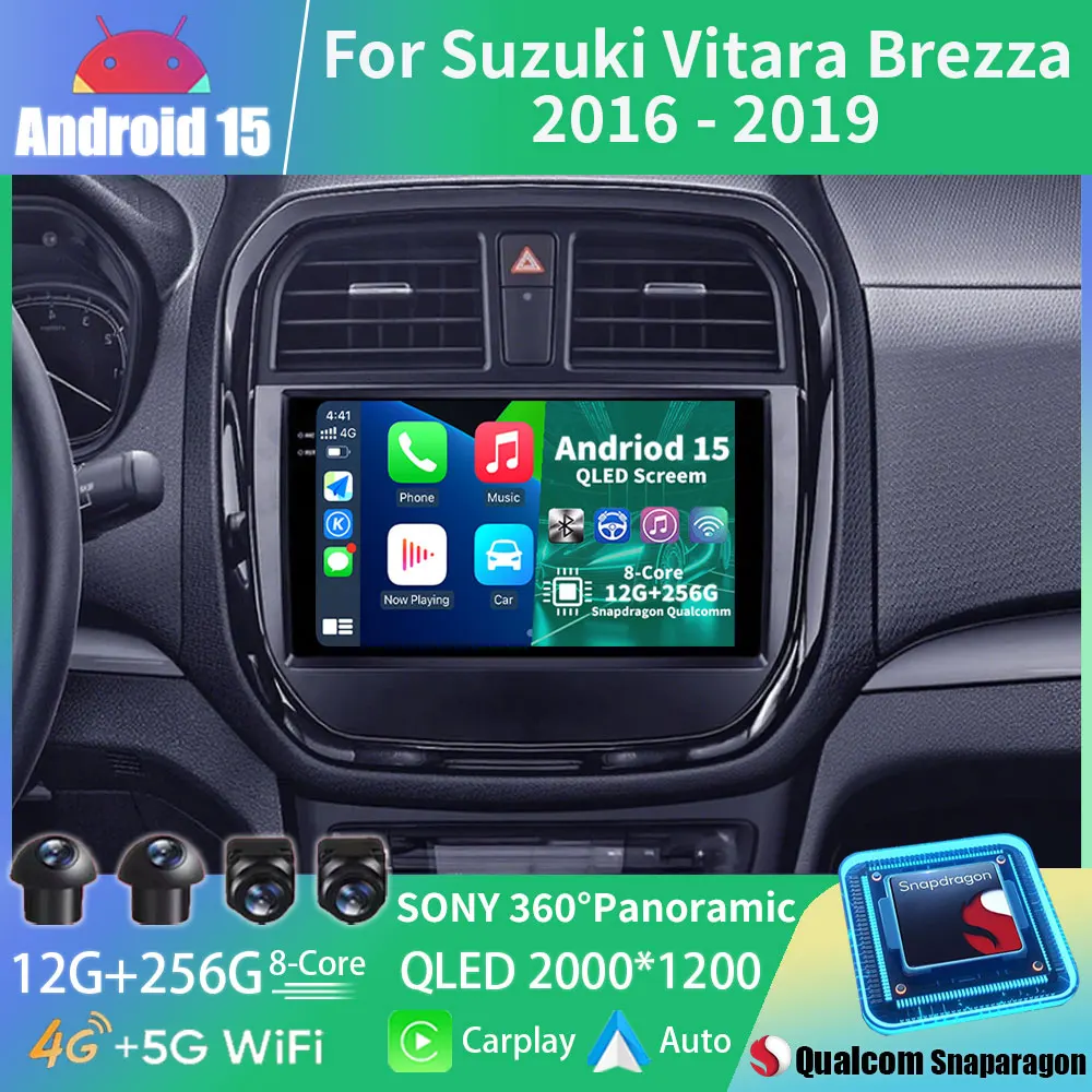 Android 15 Car Radio For Suzuki Vitara Brezza 2016 - 2019 GPS Multimedia Player Navi Head Unit 360 Camera Wireless Carplay Auto $106.68