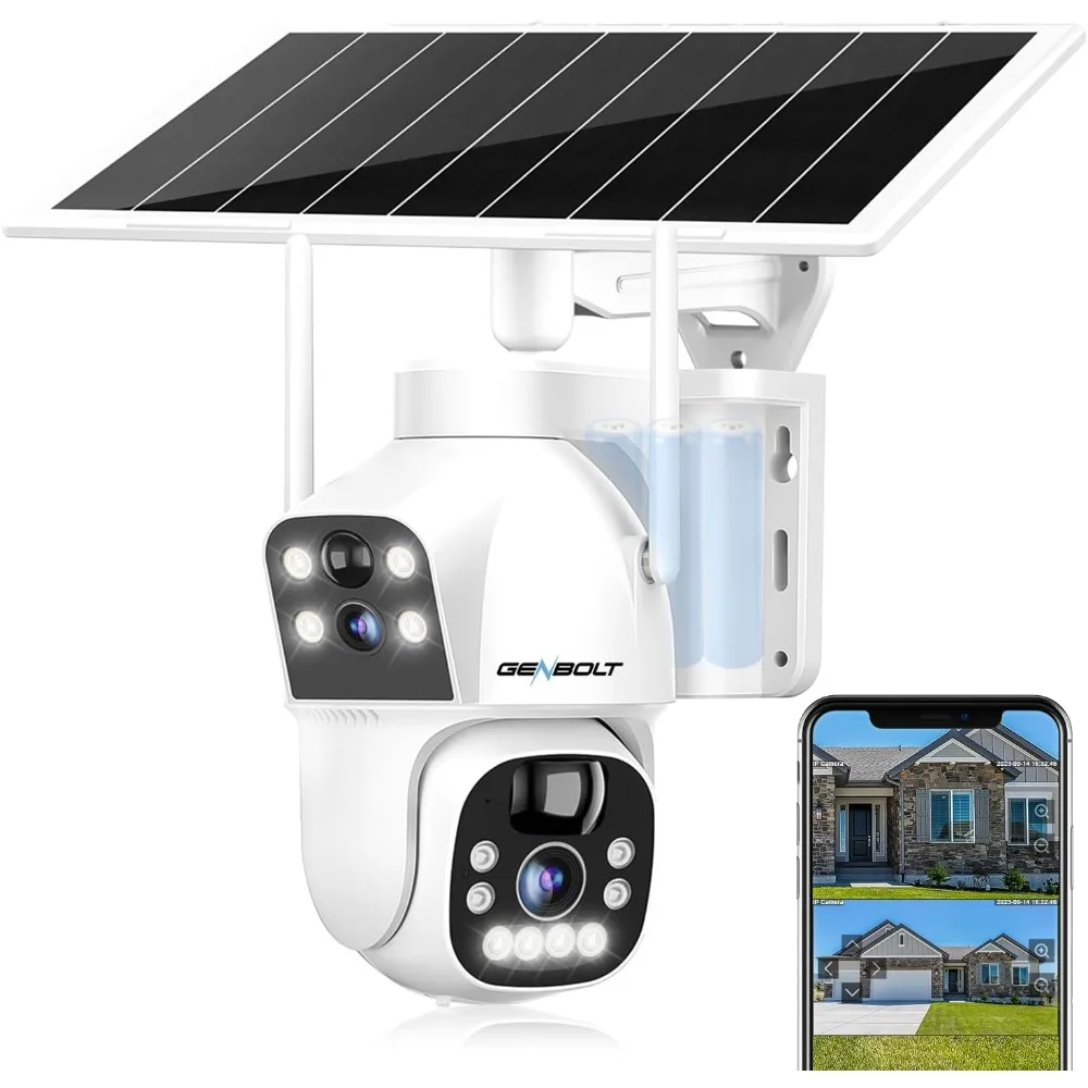 solar wifi security camera outdoor wireless, 8w 15600mah battery powered home surveillance cam cctv with dual view, dual lens s $108.46