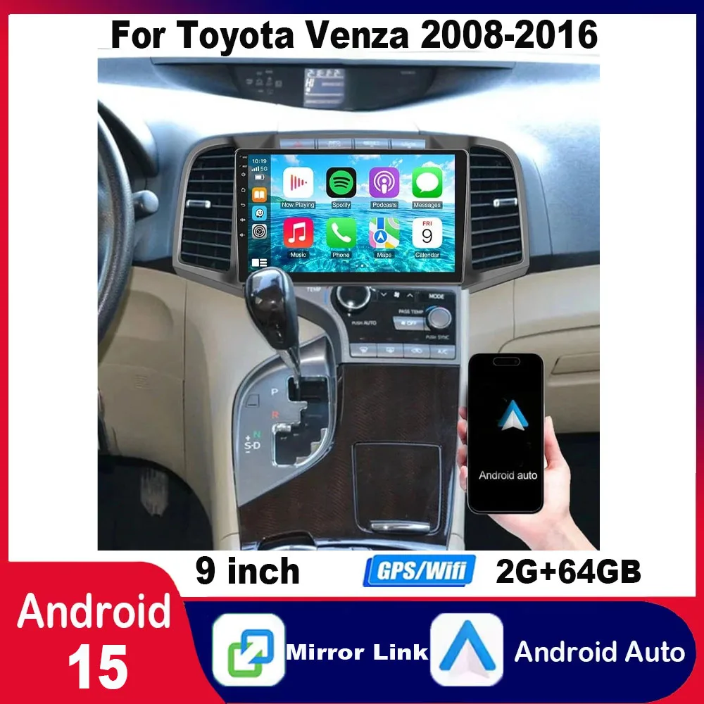 9-inch Android 15 car navigation For 2008-2016 Toyota Venza fit for Carplay+Android auto/2+64G+AHD camera+microphone $110.65