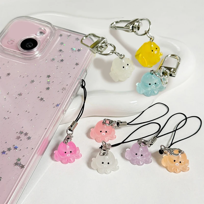 1Pair Cartoon Luminous Octopus Phone Lanyard Lovely Animal Mobile Phone Chain Keyring Camera Pendant Car Key Accessories $2.86