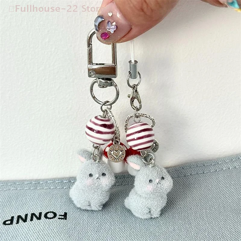 【MAX-22】Mushroom Flocked Bunny Rabbit Phone Chain Lanyard Ccd Camera Charm Accessory Girl Keychain Pendant Bag Ornaments Gift $4.40