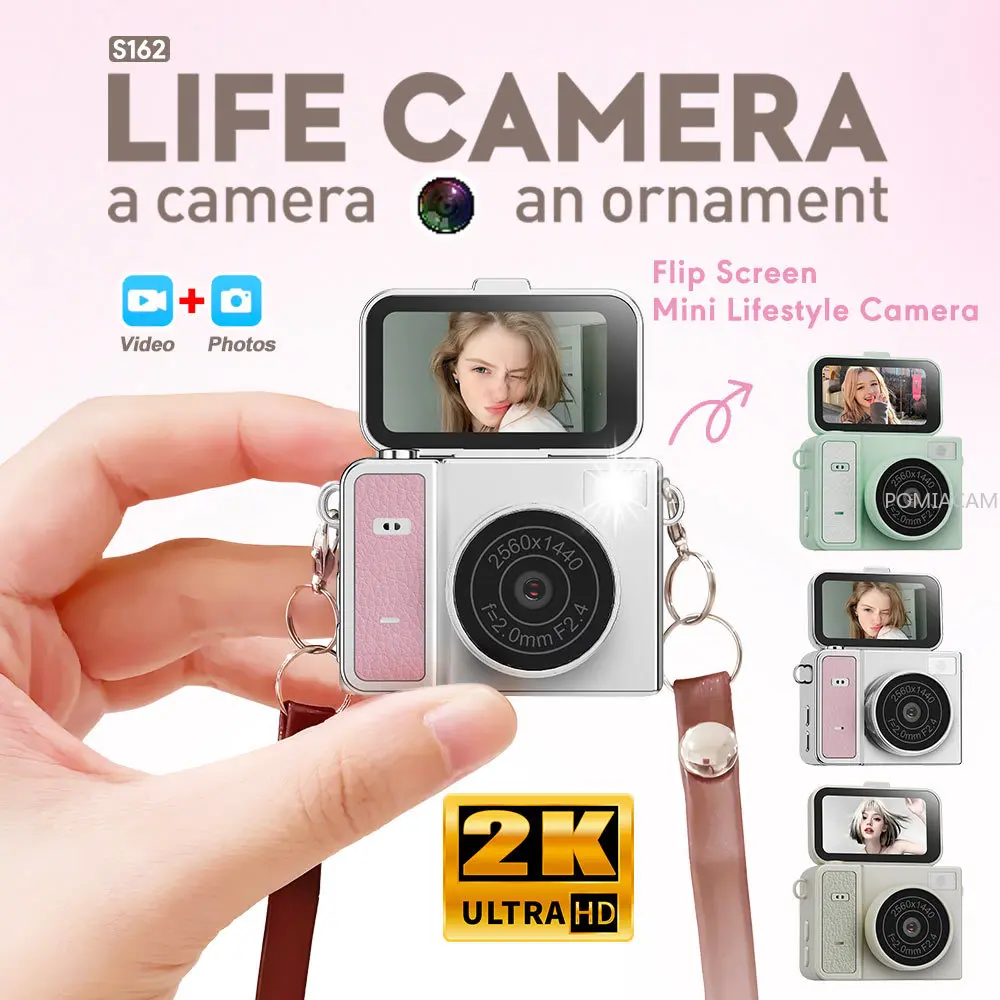 S162 2026 NEW Mini Camcorders 1.47-inch Flip Screen Mini Action Camera Retro Style 2K Very Small Camcorder Video Recorder 30g $35.99