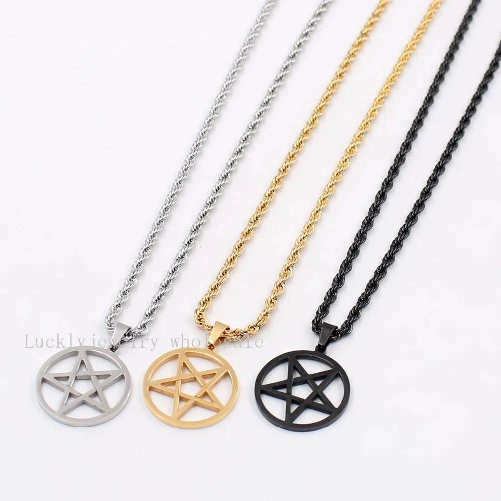 4mm 21.6 inch Rope Chain Stainless Steel Wiccan Pagan Wicca Inverted Pentagram religion Pendant Men's necklace $5.45