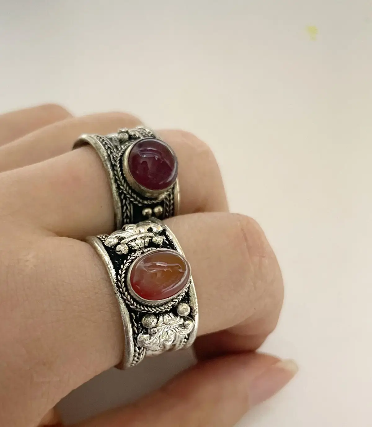 Antique Open Ring Dark Orange red Agate Tibetan Silver Jewelry for Woman Girl Man Adjustable Size $4.90