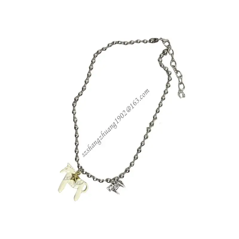 Q6RB Drip Glaze Foals Pendant Necklace Allergy Resistant Alloy Fashionable Collar Chain Accessory $1.81