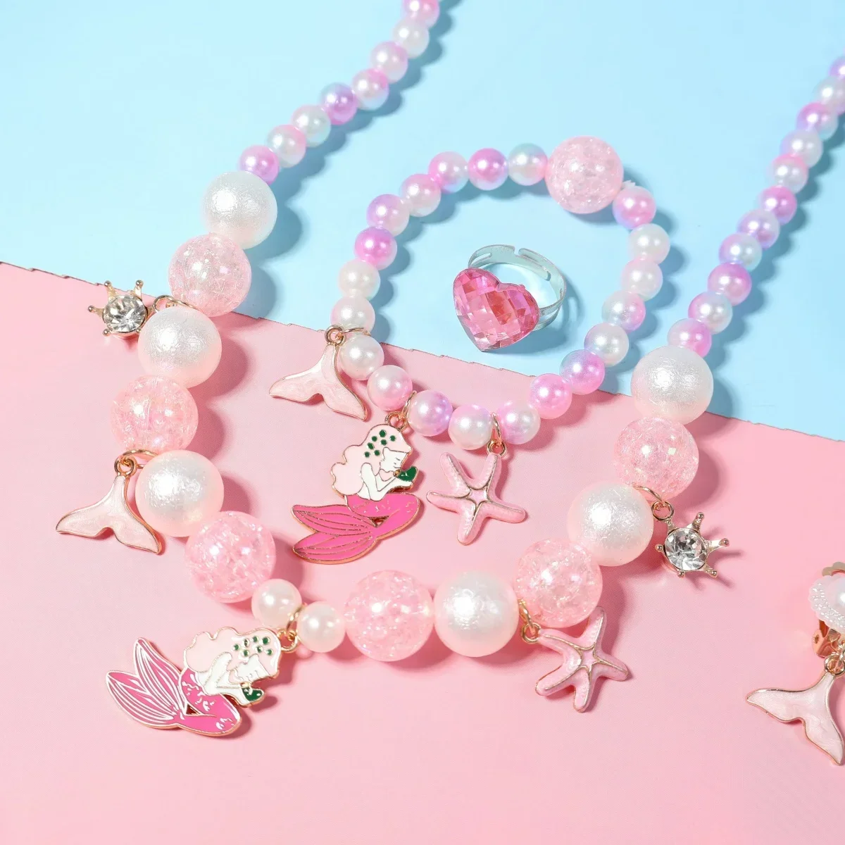Magical Mermaid Jewelry Set 5Pcs Necklace Bracelet Earrings Ring Ocean Fantasy Gift for Girls Dress Up New $5.29