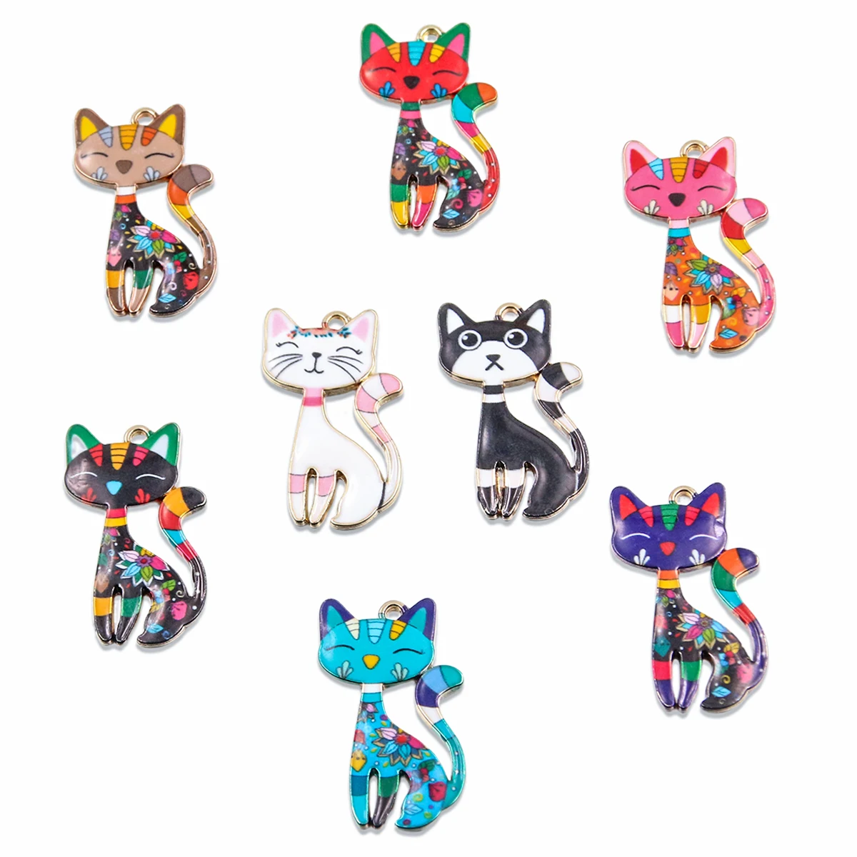 10Pcs 8 Color 17x29MM Alloy Metal Drop Oil Printing Flower Cat Charm Animal Pendant For Enamel DIY Bracelet Jewelry Making $2.29