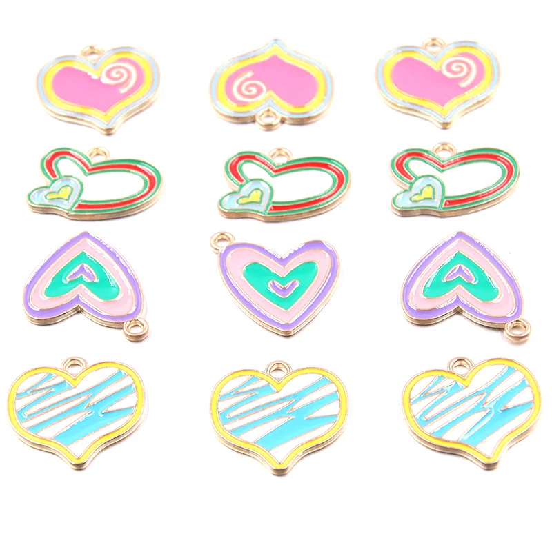10Pcs 4 Style Alloy Metal Heart Charms Love KC Drop Oil Mix Color Pendant For DIY Bracelet Jewelry Material $2.45
