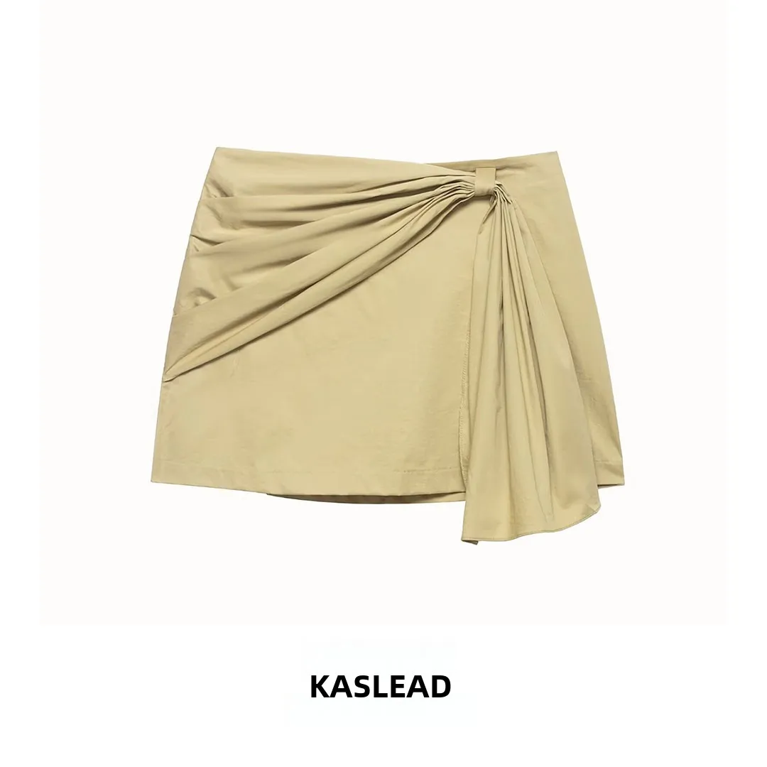 Fashionable Versatile Women's A-Line Skirt with Belt Design in Diagonal Pattern Polyester Fiber Standard Fit for Spring $23.45