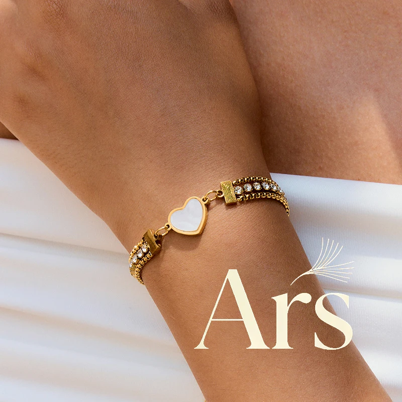 Ars Gold Plated Heart Charm Bracelet Stainless Steel Triple Chain Bracelets Women’s Dainty Zircon Bracelet Adjustable Bracelets $4.74