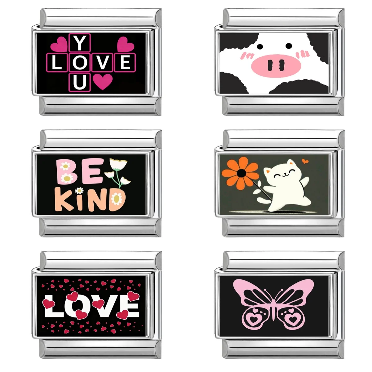 Y2K Black Series Cute Cat Cow Heart Flower Moon Butterfly Italian Charm Links Fit 9mm Stainless Steel Bracelet DIY Making Gift $0.86
