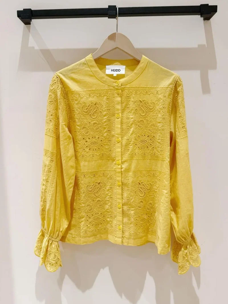 Yellow round Neck Long Sleeve Embroidered Heavy Work Flower Design Shirt Casual Style Cotton Fabric Breathable Spring Fashion... $67.12