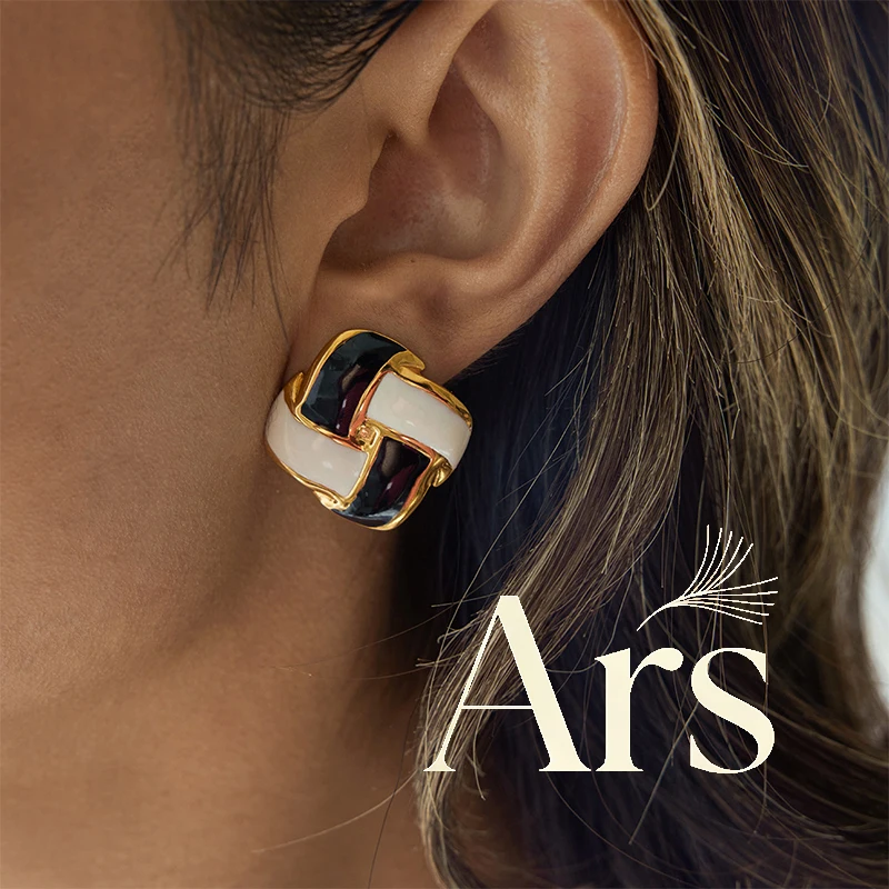 Ars 18k Gold Plated Stainless Steel Square Shape Earrings for Women Vintage Black&white Color Ear Studs Enamel Stud Earrings $4.30