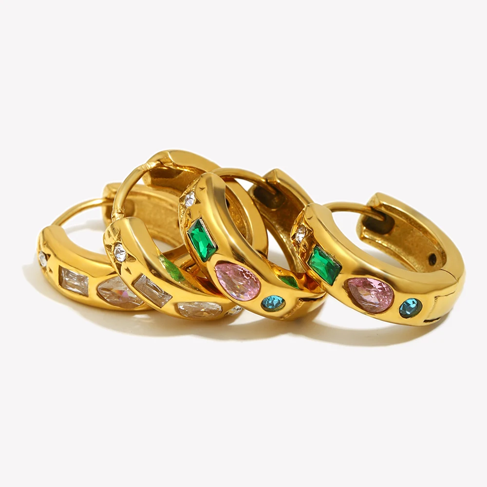 E.B.belle Colorful Zircon Hoop Earrings Tarnish Free 18K Gold Plated Earrings for Women 316L Stainless Steel Jewelry $3.01