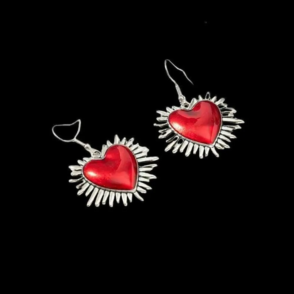 Romantic Gothic Gold Color Thorn Dark Red Heart-shaped Dangle Earrings for Woman Fashionable Jewelry Accessory Girlfriend's Gift $2.03