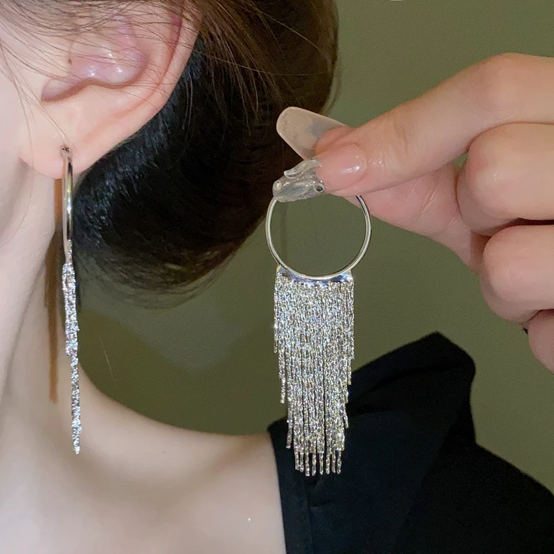 Personality Gold Plating Chain Long Fringe Earring Hoop Earrings For Women Fashion Delicate Party Wedding Ear Jewelry Gifts $3.58
