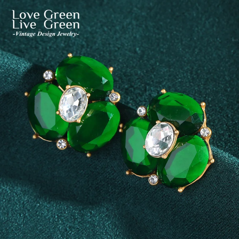 Vintage Clover Green Zircon Stud Earring Luxury Jewelry Designer Leaf Lucky Trendy 2025 Unique For Woman Accessories Wedding $17.36