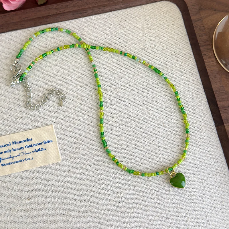 2026Summer Green Handmade Beaded Choker Necklace Light Luxury Design Clavicle Chain Jewelry 2026 Fashion Accessory $2.55