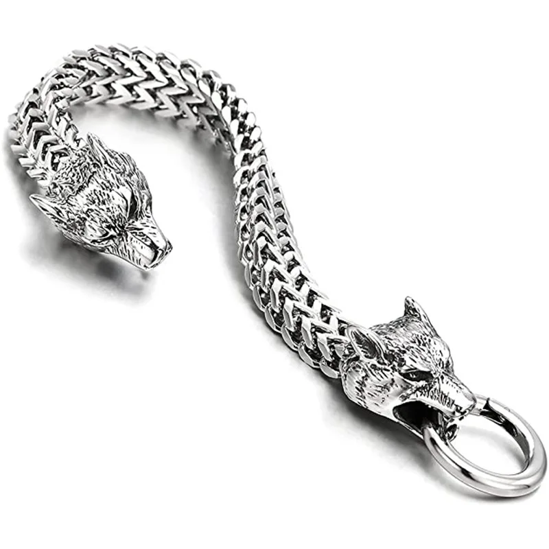 Men's Stainless Steel Wolf Head Bracelet | European American Hip Hop Rock Fashion Trendy Personality Accessories for Men $20.65
