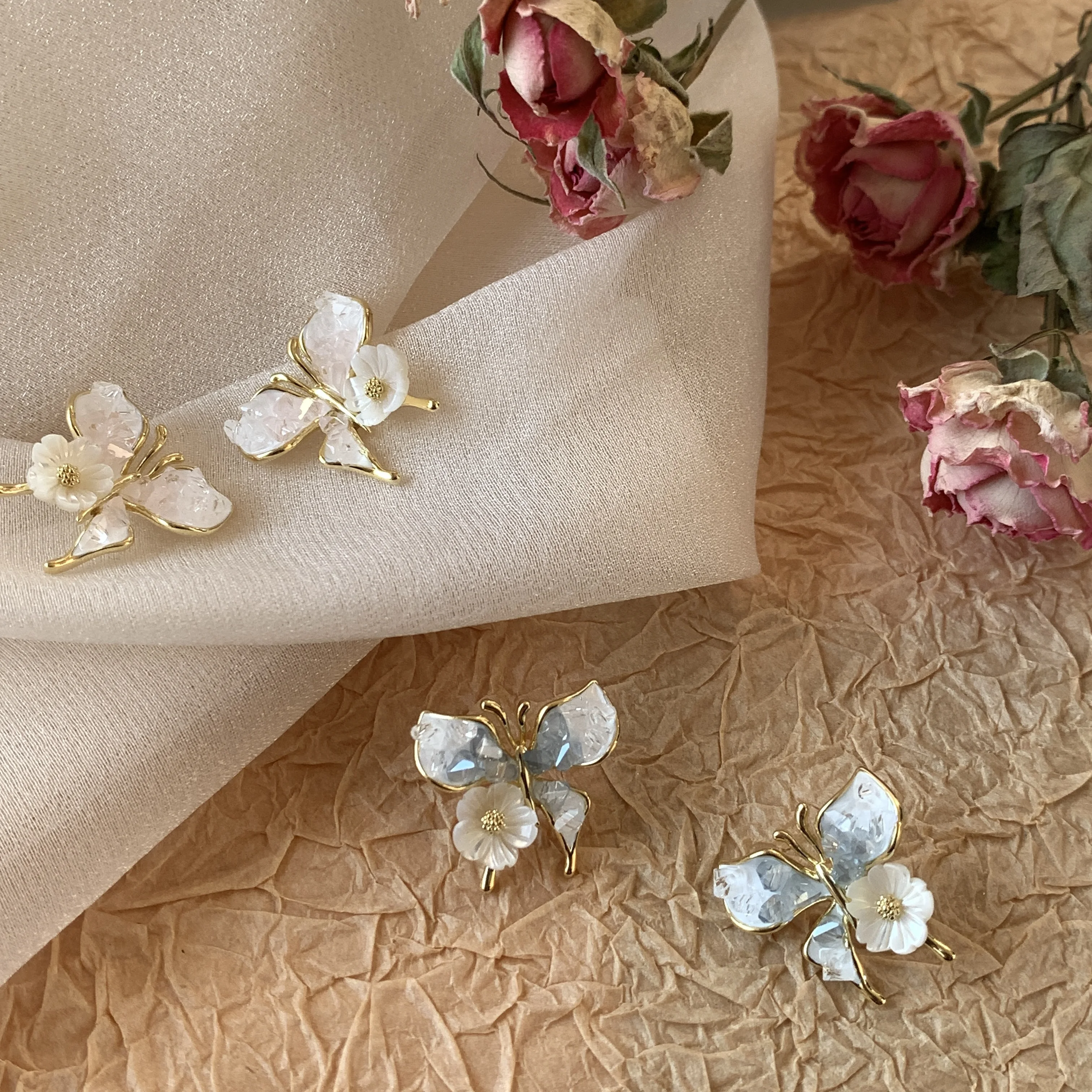 Cute Butterfly Stud Earrings For Women Exquisite Crystal Imitation Pearl Earrings For Party Wedding Ear Jewelry Girls Gifts $3.90