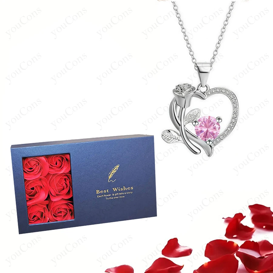 Blue Heart Pendant Necklaces With 6 Rose Gift Box For Women Lover Mom Christmas 2025 Fashion Romantic Wedding Jewelry $6.40