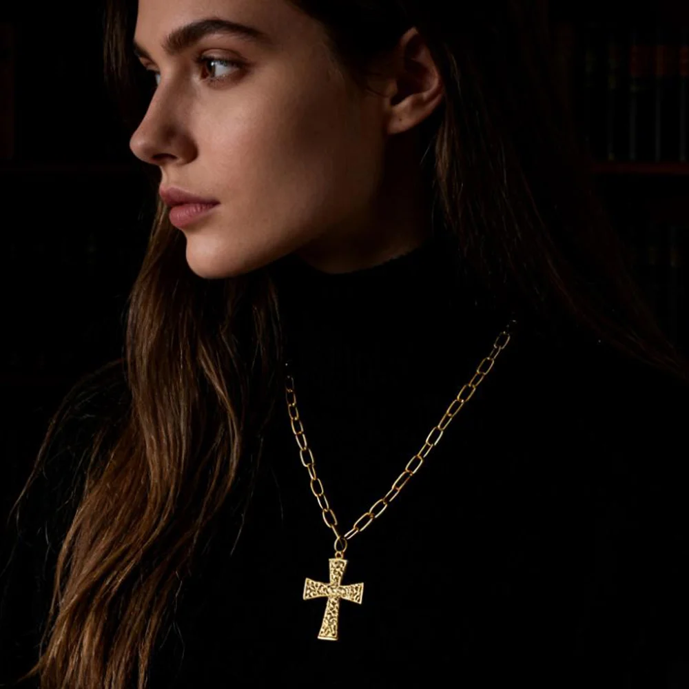 Vintage-Inspired Cross Necklace Chic Religious Vibe Handcrafted Gold Cross Chain Necklace Accessory for Casual & Elegant Outfits $6.88