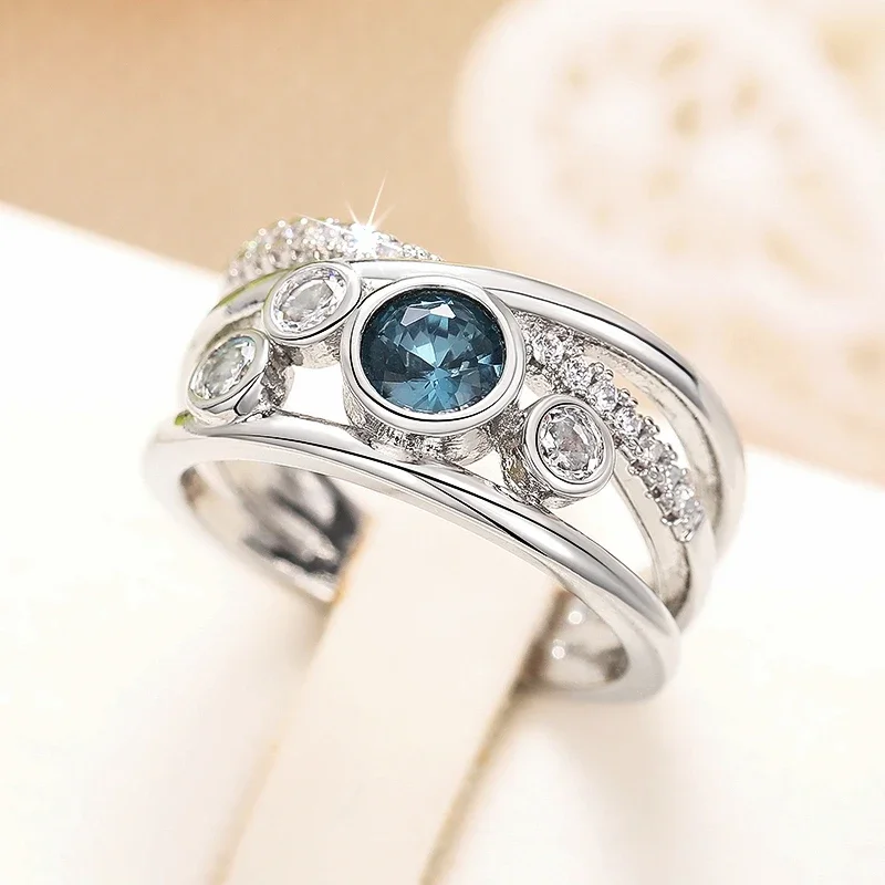 Huitan Trendy Cross Silver Color Finger Ring Female Shiny Blue Zirconia Accessories for Engagement Party Fashion Jewelry Gift $3.61
