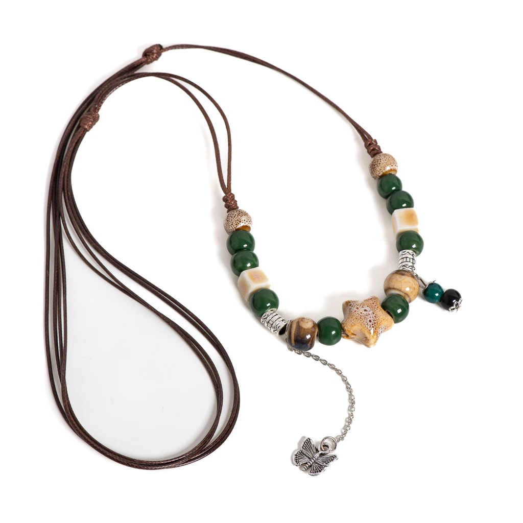 Bohemian Style Adjustable Ceramic Necklace with Butterfly Charm and Colorful Beads for Artistic Everyday Wear S02-046 $1.84