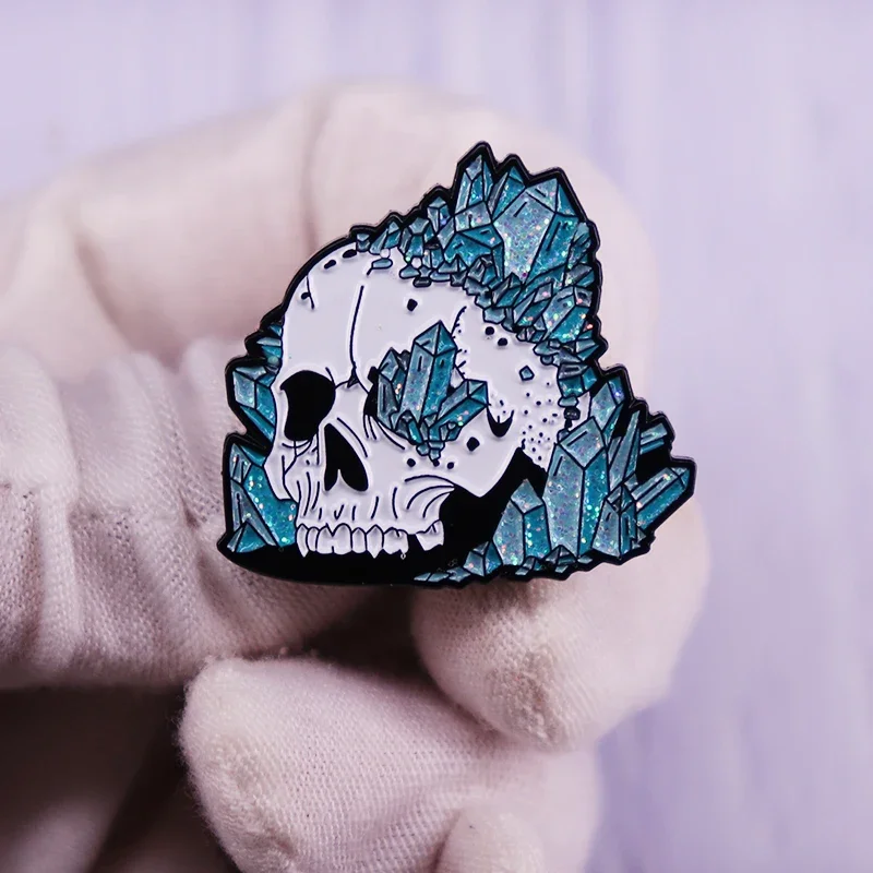 Blue Sparkle Crystal Skull Enamel Pin Skeleton Mineral Glossy Brooch Punk Gothic Badge Halloween Fashion Jewelry $2.46