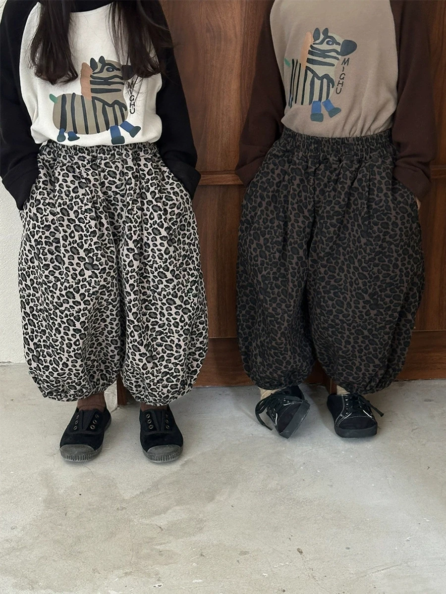 2025 Boys Girls Spring Autumn New Children Clothing Fashion Leopard Pattern Full Print Casual Loose Children Pants $8.71