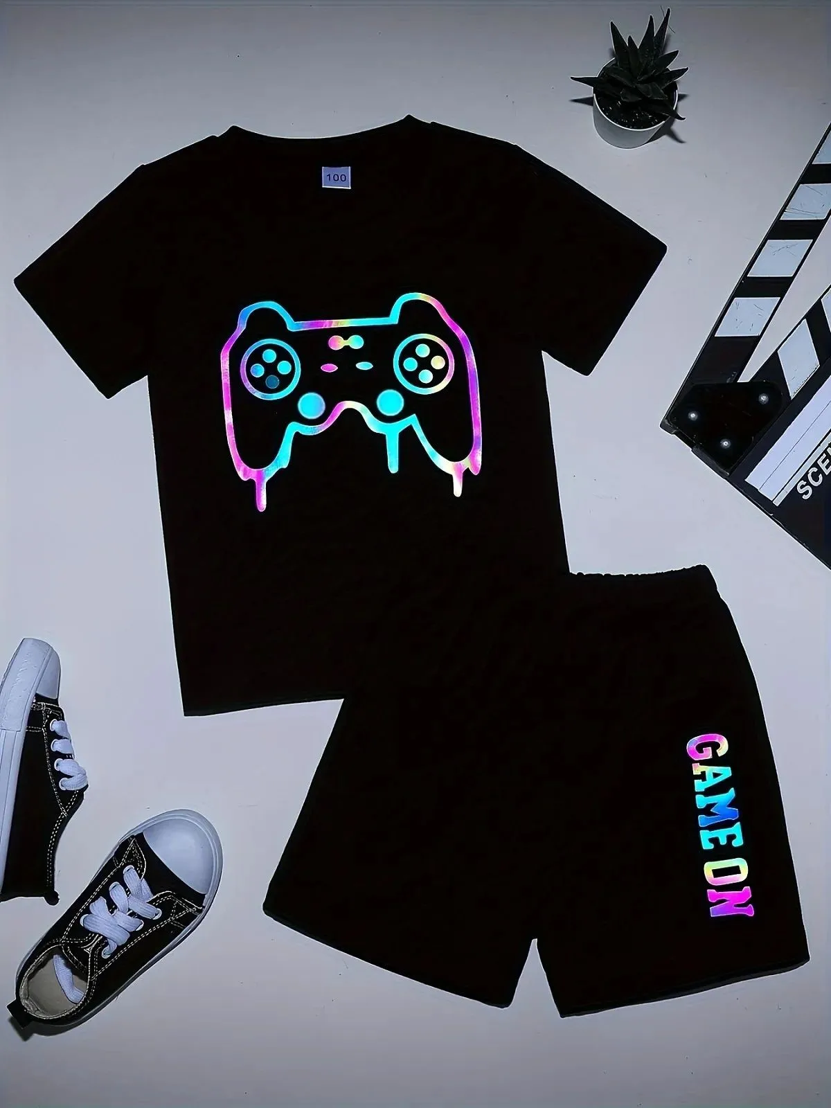 2025 Summer New 3D graffiti game console print Casual fashionable comfortable breathable soft and light children's set $10.90