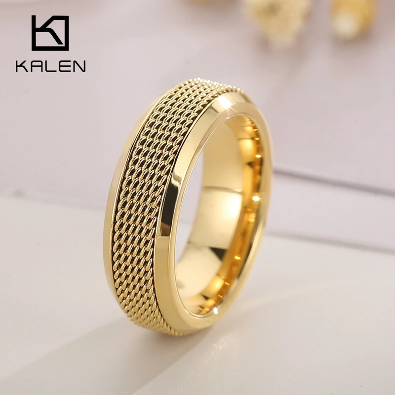 KALEN Waterproof Wedding Ring for Women Men Couple Rings Chunky Geometric Circle Minimalist Ring New Fashion Jewelry Gift $4.51