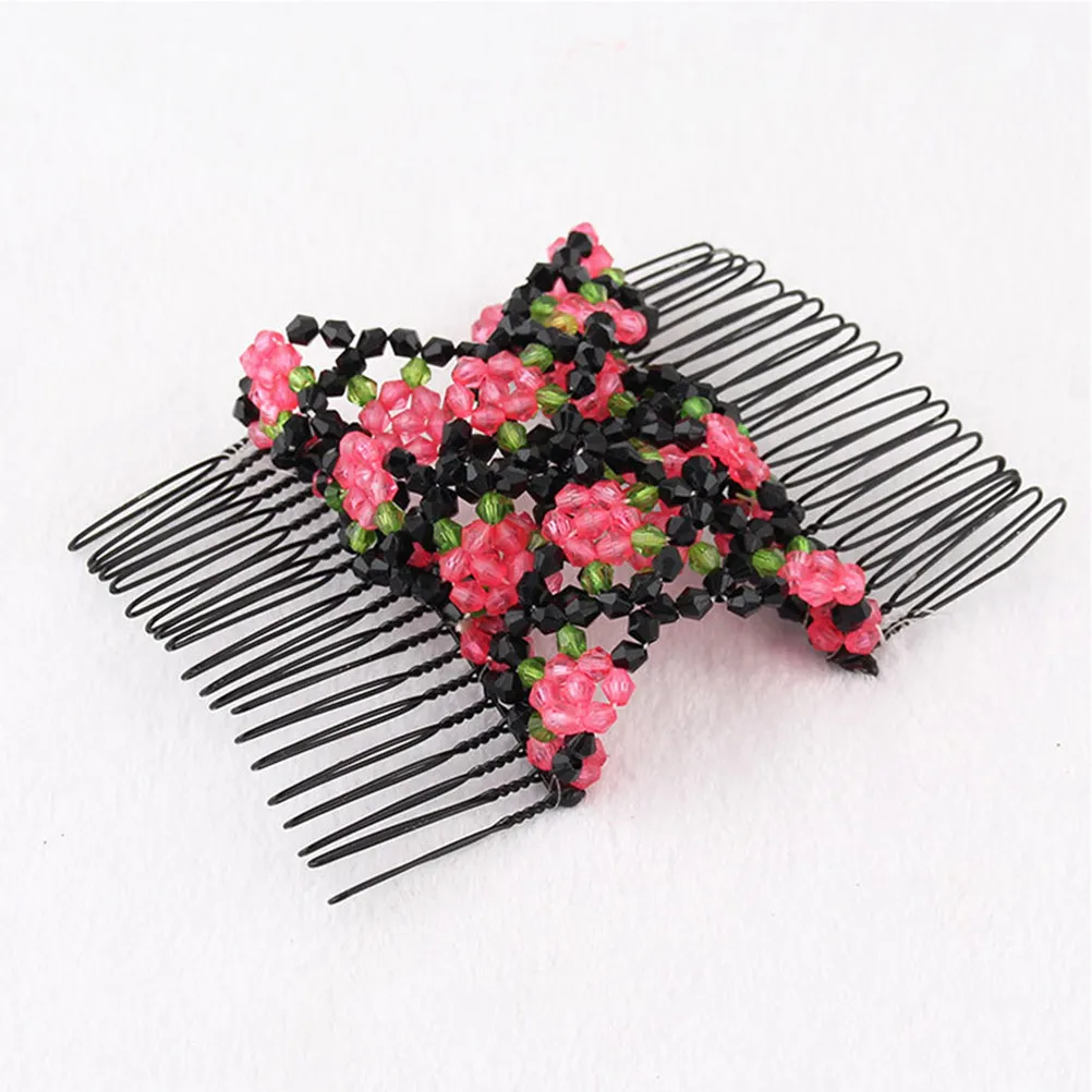 4Pcs Beaded Double Hair Comb Clip Stretchy Slide Accessory for Women Fashionable Hair Bun Clip No Pull Damage Strong Hold $9.79