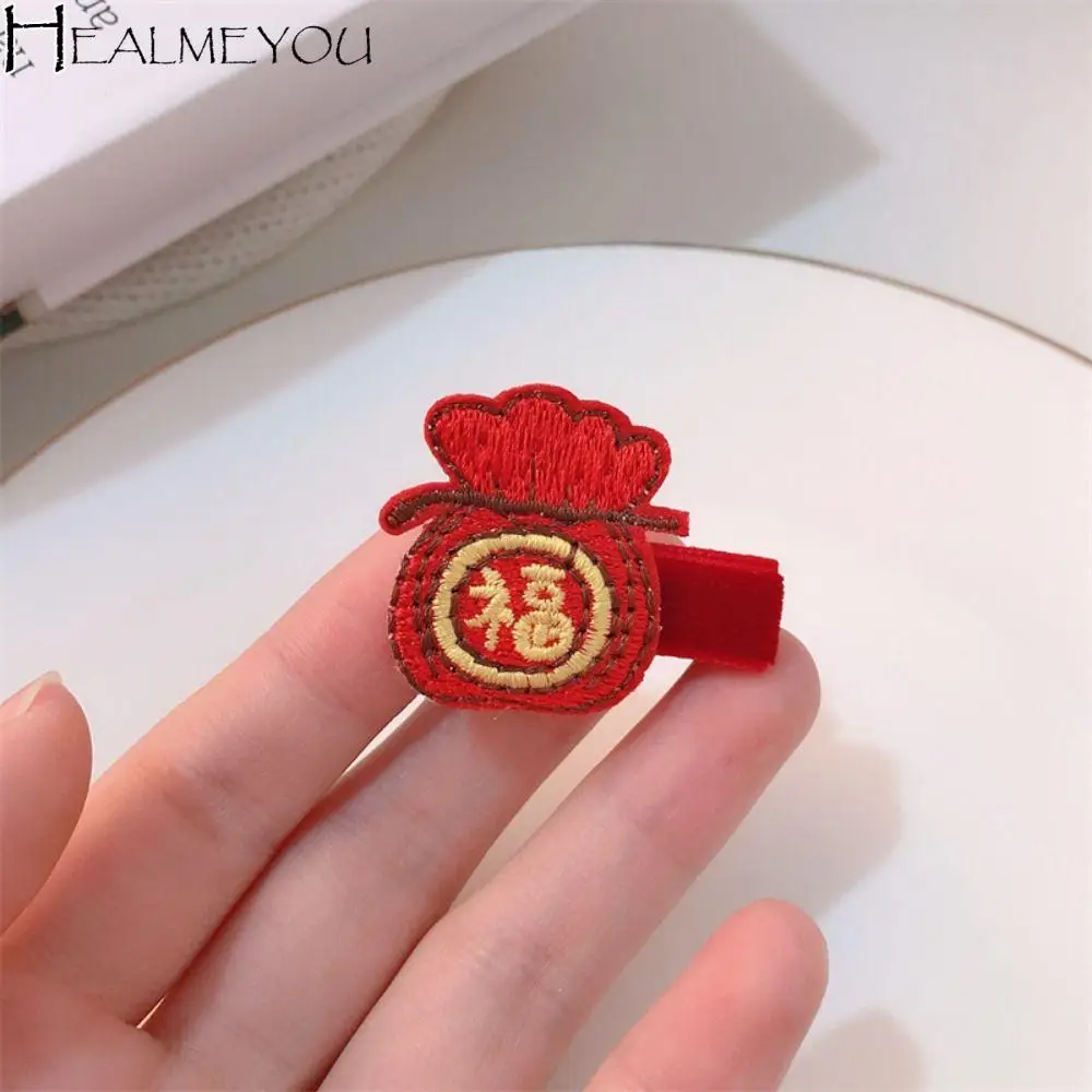 Embroidery Children Red Hairpin Lion Dance Mascot Dragon Chinese New Year Headwear Cloth Tang Suit Hair Clip Hanfu Hair Sticks $0.39