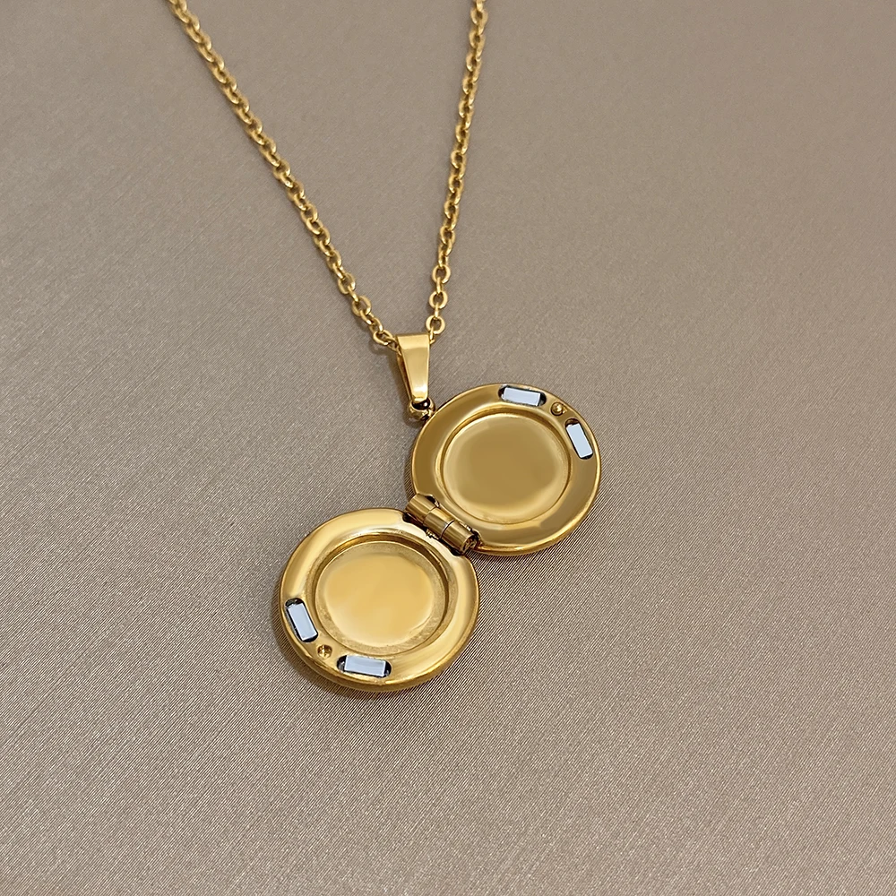 Greatera Tide Open Close Disc Adjustable Pendant Necklace Charm Personality Waterproof Plated Gold Cubic Zircon Filled For Women $4.90