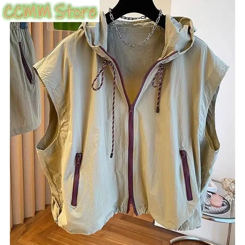 Fashion Zipper Pockets Sleeveless Hooded Shirts Female Clothing Summer New Loose Solid Color All-match Tops Casual Blouses $28.37