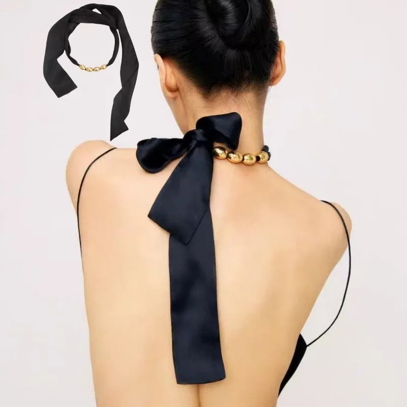 French Retro Ribbon Gold-plated Bead String Women's Collarbone Chain Fashionable Light Luxury Long Necklace for Women $17.65